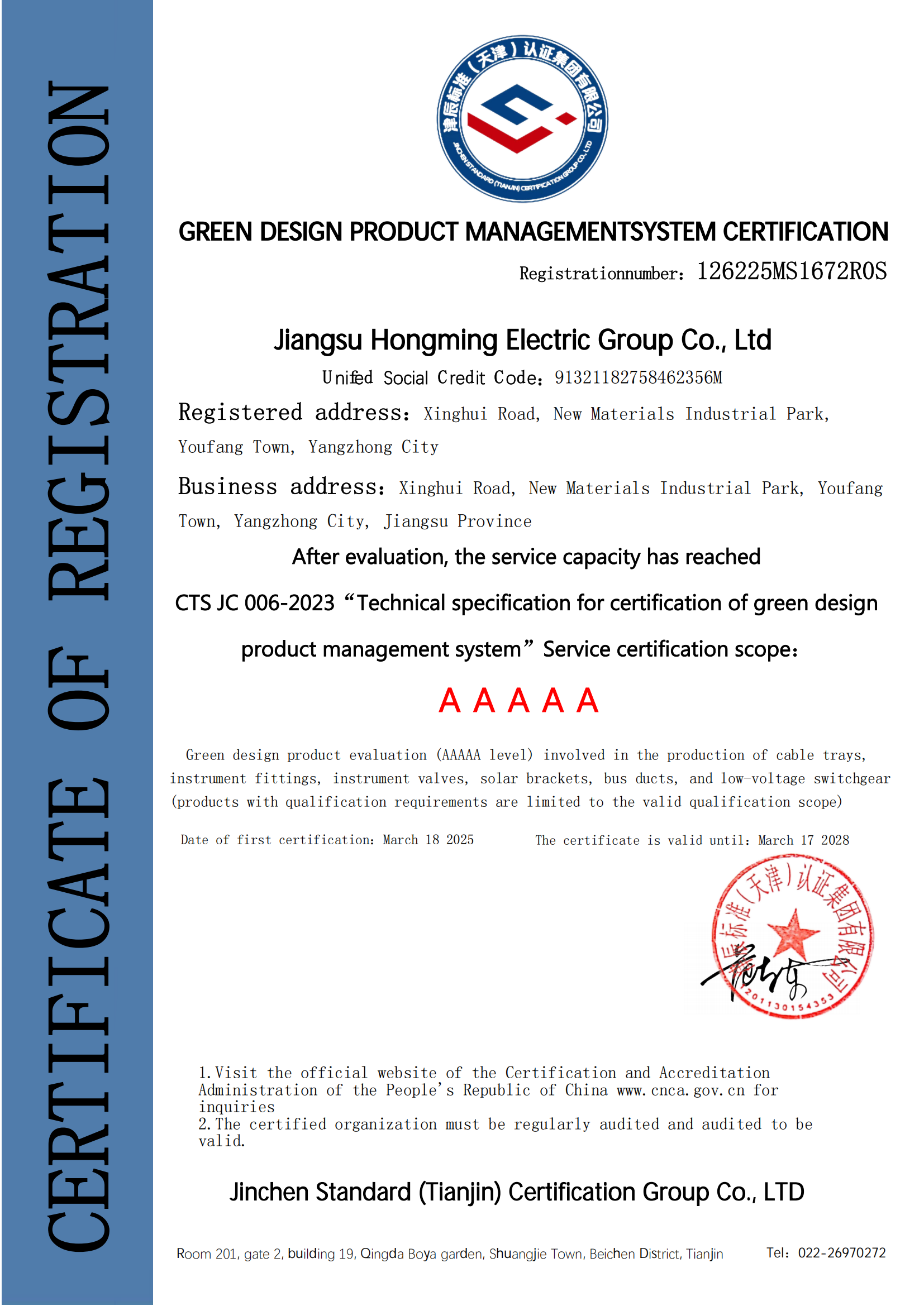 綠色設計產(chǎn)品管理體系認證證書(shū)